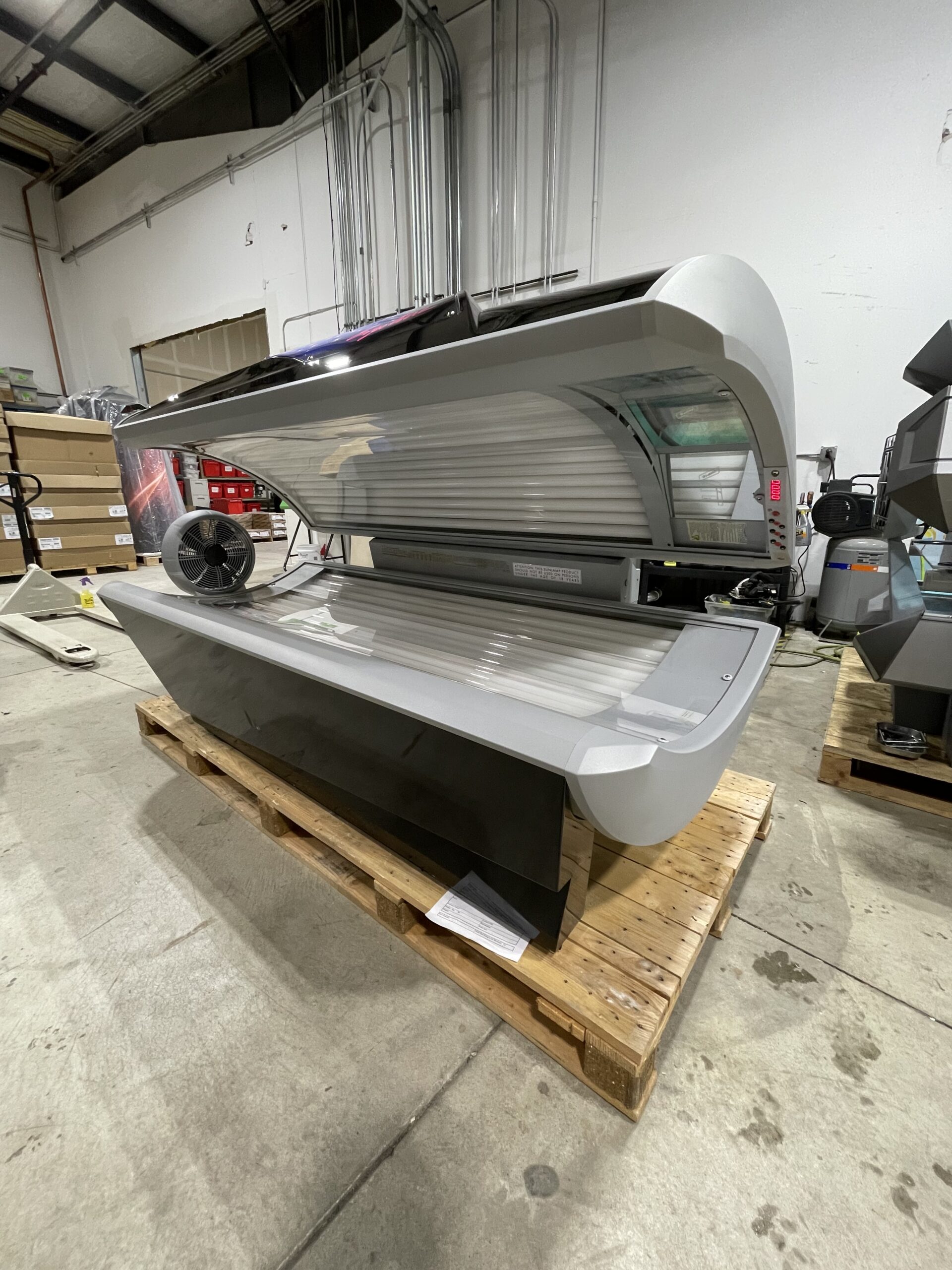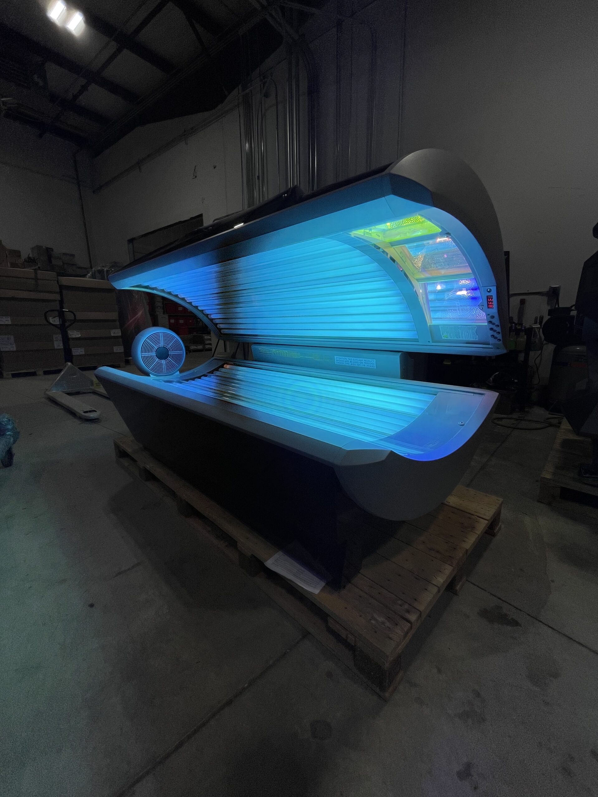 Cooling System: A high-output foot fan delivers a steady flow of air, maintaining a comfortable temperature throughout the tanning session.
